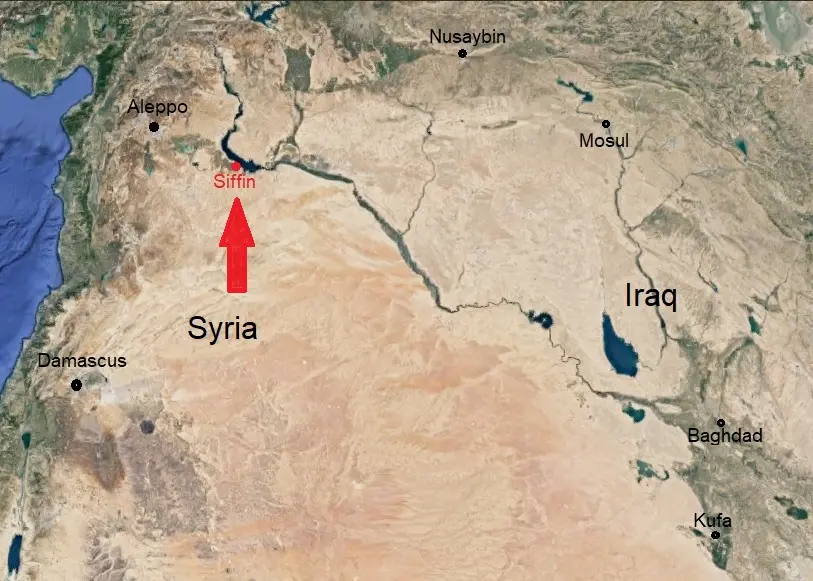 In the spring of 657, Muawiya left Damascus with his army to carry war into Iraq. He crossed the boundary and halted at a village called Siffin – on the bank of the river Euphrates. His first act was to occupy the water-front.